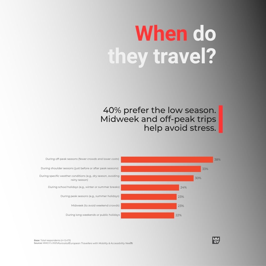 40% prefer off-season travel to avoid crowds, stress, and accessibility obstacles.